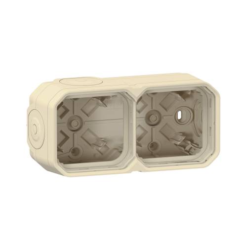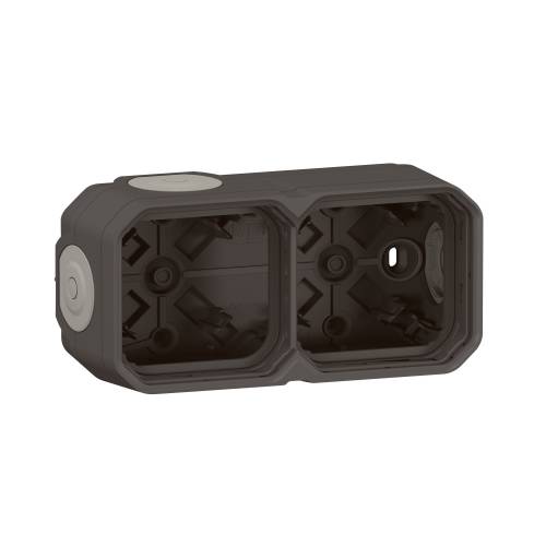 Boîtier étanche en saillie 2 postes horizontaux/verticaux sans cloison avec 4 embouts à membrane Plexo
