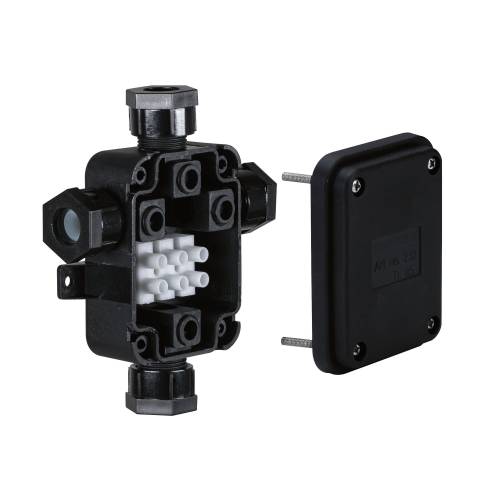 Les boîtes de connexion Special Line vous assistent efficacement dans l'aménagement de votre jardin. En fonction de vos besoins, vous pouvez raccorder des câbles 230 V ou 12 V de manière étanche (IP67). Boîte de jonction pour 4 câbles maxi (2500W), les sorties inutilisées restent fermées. Dimensions 140x110x55mm.