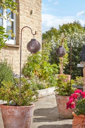 Lanterne Forli Flaming, technologie Cool Flame pour un effet flamme vacillante très réaliste. S'allume automatiquement la nuit. Charge en plein soleil.