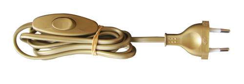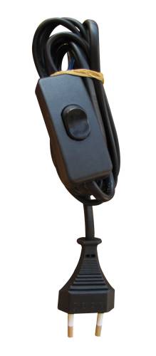 Câble 2x0,75mm², longueur 1,5m. Fiche 2 pôles. 2A 250V 50Hz. S'installe sur un luminaire pour l'alimentation électrique, l'allumage et l'extinction.