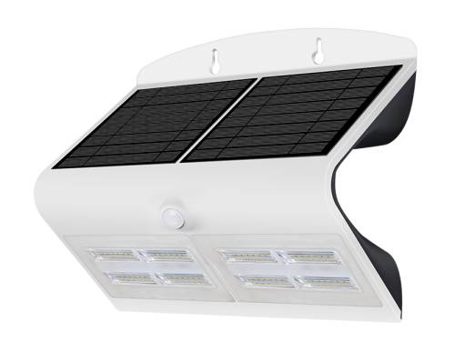 Déclenchement automatique de nuit en cas de mouvement. Le spot reste allumé après détection pour une durée déterminée selon l'un des 3 modes choisis. Diffusion de la lumière sur les faces avants et arrières. Projecteur sans fil au design unique comme un 'papillon'. Simplicité de pose (gabarit fourni). Capteur de luminosité et de mouvement intégré. Alimentation par panneau solaire. 3 scénarios de fonctionnement. On/off automatique. Batterie remplaçable. Protection IP65. Détection : 2 à 6m angle 120°.