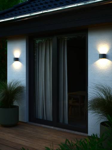 Milda, qui a un design simple et minimaliste, produit un effet de lumière intéressant vers le haut et vers le bas sur le mur. Utilisez les pochoirs intégrés pour créer le motif lumineux que vous souhaitez. IP44. Non gradable. LED garantie 5 ans. Classe d'énergie efficace : F.