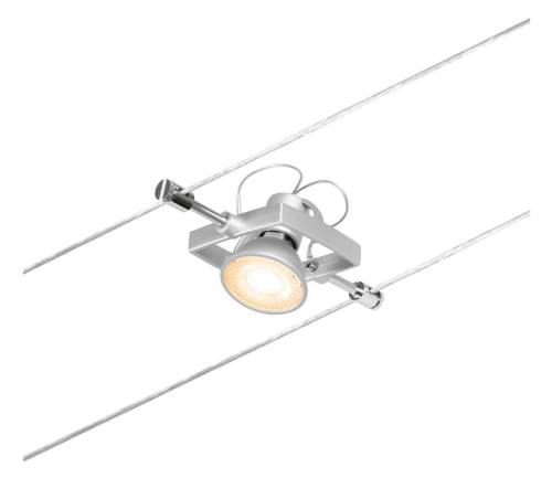 La gamme Mac II s'installe aussi bien sur un mur qu'au plafond et offre des possibilités d'aménagement illimitées. Matière métal et plastique. Droites, pentues ou resserrées. Les systèmes câbles s'intègrent dans toutes les pièces et résolvent les problèmes d'installation. Personnalisable, le kit de base se complète avec des spots individuels, des renvois d'angles et autres accessoires. Le câble d'une longueur de 10 m peut être divisé au milieu pour que le système soit tendu sur max. 5 m. Ce système permet une diffusion de la lumière optimale et peut être facilement étendu en cas de besoin d'éclairage plus élevé. Une seule prise électrique est nécessaire pour la répartition des luminaires dans l'ensemble de la pièce. Les systèmes dotés de la technique 12 V CC (courant continu) ne sont pas gradables via un variateur mural. Classe de protection II. Vendu sans ampoule.