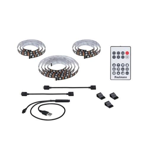 Pour des effets lumineux spectaculaires au salon, les Strips TV USB fournissent un éclairage sur trois côtés derrière le téléviseur. L’éclairage d'ambiance indirect crée des touches lumineuses efficaces grâce à un jeu de couleurs agréable, calme et dynamique. Les Strips plantent habilement le décor propice au divertissement à domicile et au Gaming. Le pilotage confortable par télécommande infrarouge permet de configurer très facilement d'innombrables dégradés de couleurs personnalisés.