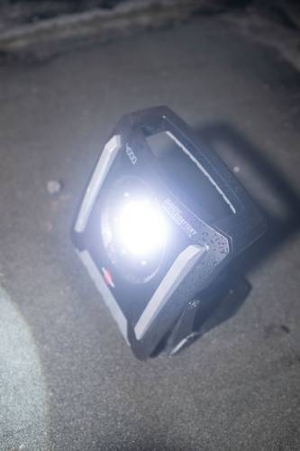 Projecteur de chantier LED Multi Battery System 4000MA rechargeable (40W, 4500lm, IP65, compatible avec 5 standards de batterie 18V Powertool : Bosch Professional, Makita, Dewalt, Milwaukee, Metabo). Robuste projecteur de chantier avec 4 modes d'éclairage (100% / 75% / 50% / 25%). Projecteur est équipé d'un support de maintien anti-basculement, d'une lentille de protection de la LED et dispositif de protection de face anti-chocs en caoutchouc. Poignée de transport ergonomique. Indice des résistance aux chocs : IK08. Classe de protection : III. Montage sur trépied possible grâce aux trous prévus.