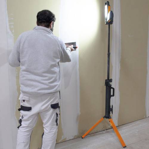 Ultra-compacte en position fermée et avec une poignée pour faciliter le transport. Robuste. Les lampes sont parfaitement protégées pour une plus grande durée de vie. Se déploie très rapidement en seulement 5 secondes. Les 2 têtes sont modulables et orientables à 360° afin de s’adapter parfaitement au chantier. Cela permet d’obtenir une lumière rasante sur les murs ou d’avoir un éclairage d’ambiance. 2 types de lumières possibles : chaude ou froide. Fonctionne en puissance moyenne lors du rechargement sur secteur. IP54.