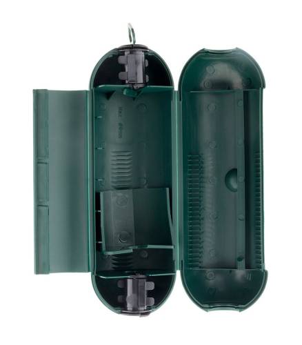 Boîtier de protection verte pour prolongateur jardin IP54. Ce boitier de protection extérieur IP54 est spécialement conçu pour protéger son contenu des poussières, projections d'eau et autres résidus microscopiques. Il permet de protéger les câbles et branchements de tous types en extérieur. IP54.