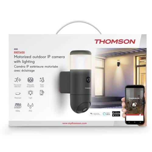 Design élégant et solide destiné à résister aux conditions extérieures, dotée d’un éclairage d’ambiance omnidirectionnel et d’une caméra à haute définition, la caméra Thomson Rheita 100 vous permettra de surveiller l’extérieur de votre habitation tout en éclairant les abords selon les critères de votre choix. IP65.