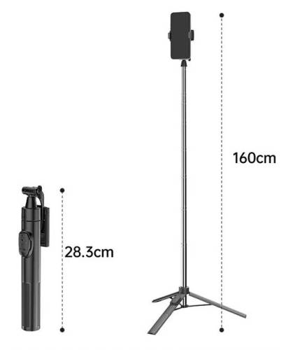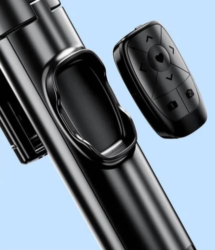 Trépied support pour smartphone, caméra sport, jumelle... (maxi 500g). Télescopique de 29 à 150cm. Pilotable à distance par télécommande Bluetooth incluse.