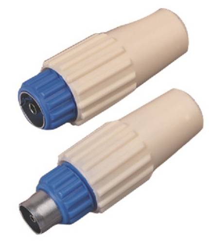 Attention : Le connecteur coaxial 9 mm de couleur vert correspond à l'ancienne norme française. Ne pas confondre avec le connecteur 9,52 mm de couleur bleu qui répond à la norme actuelle.