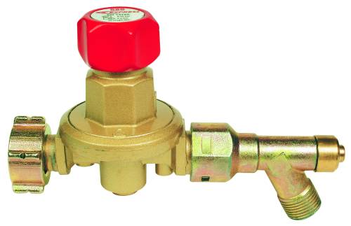 Détendeur propane avec sortie 3/8'' gauche. Garantie 5 ans, Entrée écrou de bouteille à ailettes à gauche.