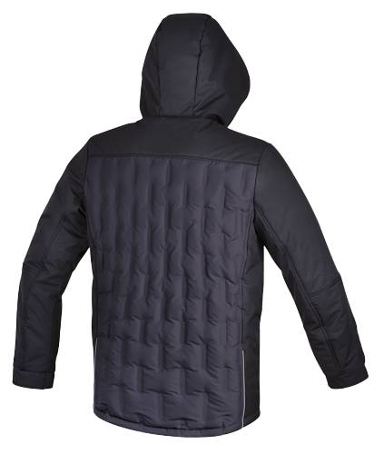 Blouson bomber en double matière, avec capuche, imperméable, pour garantir résistance et protection contre le froid. L'utilisation de deux tissus, nylon et softshell, rend le vêtement extrêmement résistant à l'eau et au vent. Le mélange de deux tissus et le nouveau système de matelassage à chaud rendent le vêtement innovant et moderne, idéal pour le travail et les loisirs.