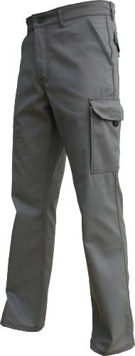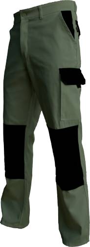 60% coton/40% polyester - 310g/m². Braguette fermée par une fermeture en nylon. Ceinture élastiquée dos. Boutonnières de réglage à l'intérieur de la ceinture. Deux poches italiennes avec sac de poche de même tissu, une poche deux soufflets cotés sur cuisse gauche avec rabat fermé par un velcro, une double poche porte-outils sur la cuisse droite. Entrejambe 82cm.