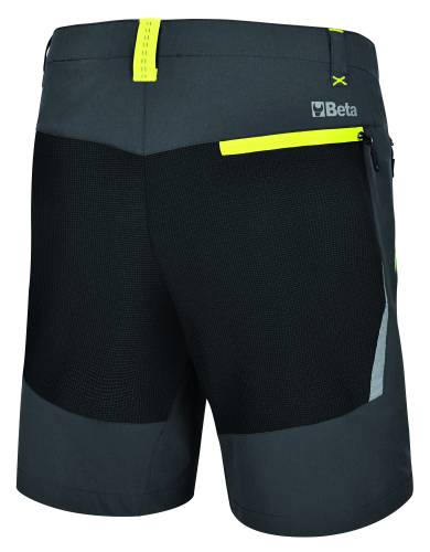Bermuda 90% nylon, 10% tissu stretch, 140g/m². Le tissu stretch et léger rend le bermuda pratique et confortable. L’ajout d’empiècements renforcés à l’arrière rend le pantalon encore plus résistant. Le design d'inspiration outdoor complète l’ensemble avec une touche d'originalité et d'innovation. Taille élastiquée. Deux poches à la taille et une poche arrière avec fermeture éclair. Le tissu stretch et léger permet de suivre chaque mouvement et assure un maximum de confort. L'ajout d'empiècements en tissu extensible hautement résistant à l'abrasion rend le pantalon encore plus résistant et durable. Design innovant inspiré des vêtements de montagne.