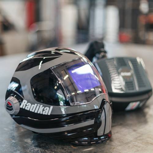 La cagoule soudeur ventilée Weltek combine la cagoule soudage automatique Radikal et l'appareil de ventilation assistée Airkos P. Sous visière incolore ergonomique à face avant relevable qui incorpore la cellule automatique SR True Colors et les visions latérales. Facilement relevable grâce à la gâchette latérale et une semi-assistance automatique. Recommandée pour le soudage à l'arc, MIG/MAG, TIG, meulage et coupage. La cagoule possède 4 capteurs d'arc, la vision latérale teinte DIN 5 pour un angle de vision de 160°C et une cellule SR Vision True Colors qui assure clarté, vision naturelle et détaillée, contrastes et restitution optimale des couleurs. L'unité de filtration Airkos assure une excellente étanchéité, 2 débits d'air et des alarmes sonores. Elle est équipée d'un filtre TH3PRSL pour les particules solides et liquides. Autonomie 9 à 10 heures.