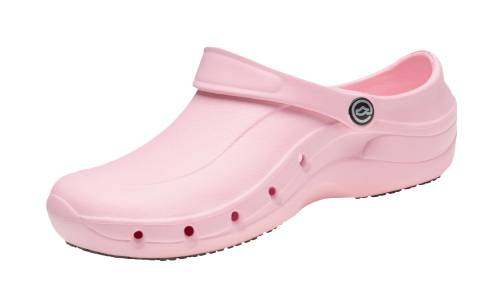 Sabot E-tech', sans embout de sécurité. Tige base E-tech' ultraléger, antibactérien, antimicrobien et recyclable, antistatique dans la masse. Aérations latérales, inclinées pour empêcher la pénétration de liquides. Première de propreté PVC souple avec relief massant. Bride arrière ajustable. Dessin unique conçu pour éviter l'obstruction d'aliments. Caoutchouc Grip-safe très antidérapant. Résistante aux graisses, huiles et hydrocarbures. Talon avec choc absorbant. Lavable à 30°C.