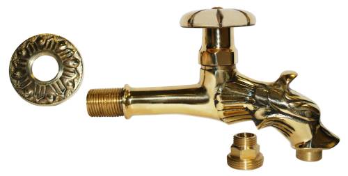 Robinet de jardin en laiton, entrée 15x21 1/2'', nez 20x27 3/4''.