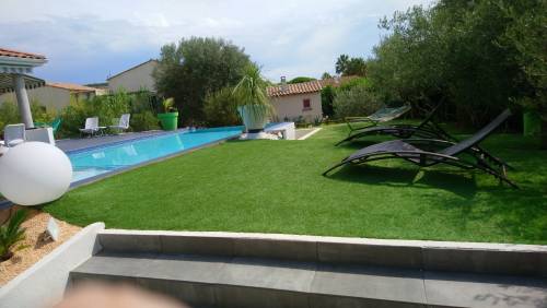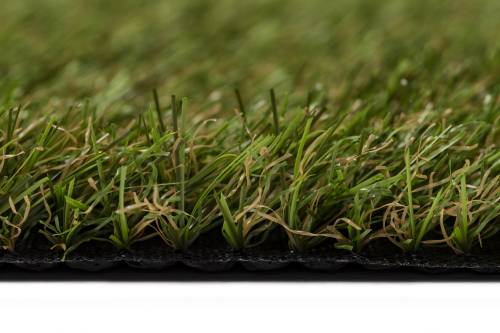 Le gazon synthétique est idéal pour les jardins et les espaces verts. Composition du velours : 5200 dtex (Monofilament PE avec stabilisation UV + Monofilament frisée avec 3200 dtex, couleur vert/beige avec stabilisation UV (+/-5%)), tissu de Polypropylène stabilise UV avec 144 g/m2 (+/-10%) et styrène-Butadiène (SBR).