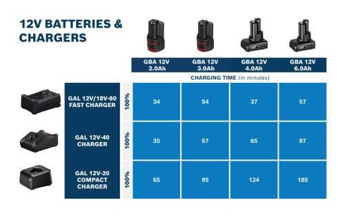 Simple et pratique, un seul chargeur pour toutes vos batteries professionnelles Bosch 12 V et 18 V. Charge rapide avec un courant de charge de 8 A qui recharge complètement une batterie 18 V 5,5 Ah en 46 minutes et une batterie 12 V 4,0 Ah en 37 minutes. Réduit les temps d’immobilisation grâce à l’Active Air Cooling 3.0 intelligent en refroidissant la batterie avant, pendant et après la charge. Pratique et compacte grâce à la solution multi-baies.