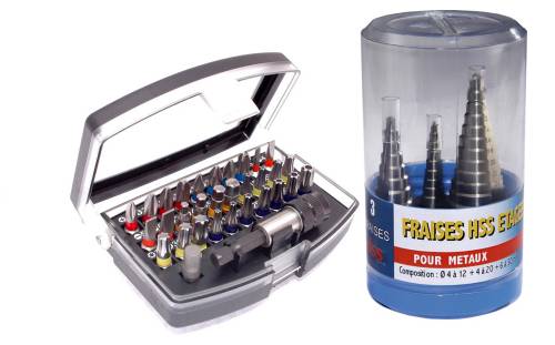 Lot coffret d'embouts et fraises étagées