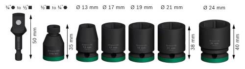 Set de 5 douilles Impact PRO avec 2 adaptateurs 1/2''