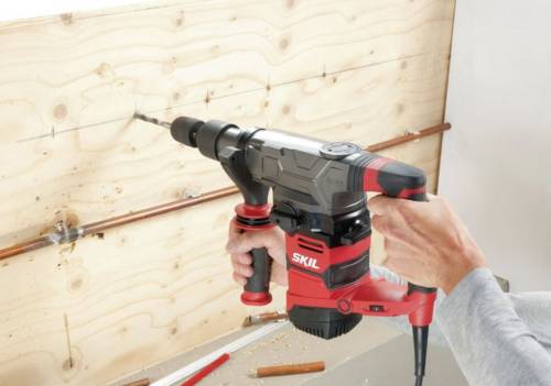 Perforateur pneumatique en forme de L avec trois fonctions (perçage avec percussion, désactivation de la percussion pour les travaux de perçage normaux et désactivation de la rotation pour les travaux de burinage). Le système de réduction des vibrations assure un confort de travail optimal et de faibles vibrations. Système « SDS+ » pour un changement de foret rapide et facile. Carter de vitesse robuste en magnésium. Embrayage de sécurité en cas de blocage de l’outil. Molette de présélection de vitesse pour un travail optimal. Poignée bi-matière pour plus de confort et une maîtrise parfaite. Poignée latérale anti-vibration réglable pour un maniement sûr à deux mains avec peu de vibrations. Jauge de profondeur réglable pour un contrôle exact de la profondeur de perçage.
