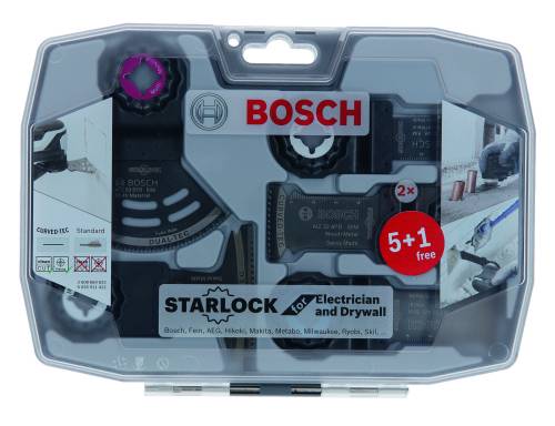 Chaque lame Starlock est sélectionnée pour convenir à tous les types de travaux qu'entreprennent les électriciens, comme la découpe d'une prise de courant carrée et les travaux d'adaptation généraux. Le kit comprend des accessoires Starlock pour le sciage et la coupe plongeante de divers matériaux.