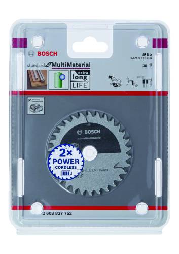 La lame de scie circulaire Standard for Multimaterial maximise l'autonomie de la batterie des scies sans fil. Son trait de coupe extra-fin réduit le frottement et l'enlèvement de matière, consommant moins d'énergie pour un sciage sans effort et en douceur. Coupes nettes et précises grâce aux dents en carbure de haute qualité. Elle est idéale pour la découpe des sols stratifiés, des métaux non ferreux, de l'aluminium, des plastiques, de l'époxy et du bois.
