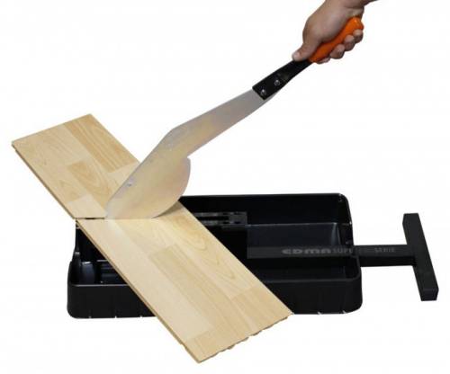 Guillotine coupe parquet stratifié et Médium. Coupe nette sans éclatement de la couche de mélamine. Pas de poussière volatile. Pas de nuisance sonore. Lame inusable non tranchante. Patins de protection en feutrine. Coupe la lame de parquet dans sa longueur. Butée amovible pour coupe en angle, coupe en longueur et largeur supérieure à 23cm. (coupe jusqu'aux lames de classe 33 pour zone commerciale avec passage très intensif (norme EN 685).
