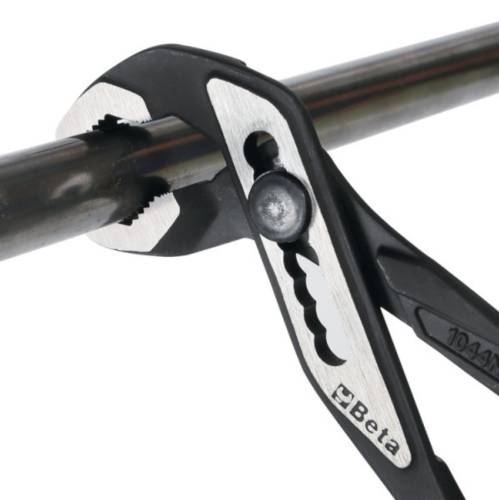 Pince multiprise en traitement phosphatée à crémaillère, avec branches munies d'une protection PVC antidérapante.