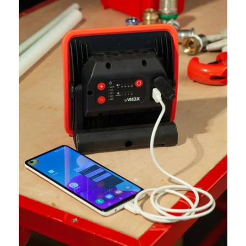 Projecteur de chantier étanche (protection IP67) avec boitier robuste en aluminium moulé pour une utilisation intensive et professionnelle dans des environnements de travail exigeants. Fonction batterie de secours avec port USB pour recharger vos appareils mobiles. Technologie de LED COB pour un éclairage puissant de 2000 lumens. Très grande autonomie jusqu'à 20 heures grâce à sa batterie Li-ion 7,3V / 4000 mAh. Réglage de l'intensité d'éclairage sur 5 niveaux de 10% à 100%. Poignée articulée avec aimants puissants. Indicateur de durée d'éclairage restant, indicateur du niveau de la batterie pendant la charge.