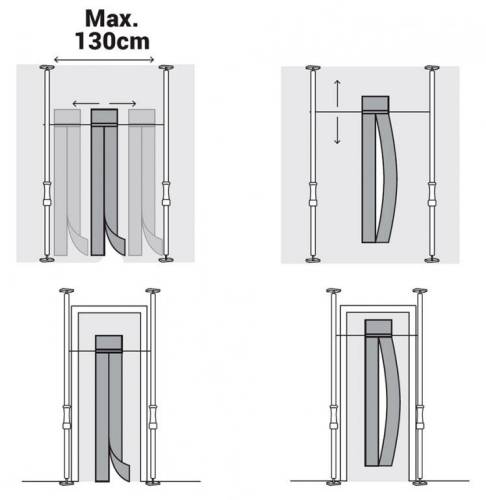 Livrée dans un sac de transport avec 4 lattes métalliques 36cm pour suspendre la porte et 2 supports multiclamps avec œillet fermé.