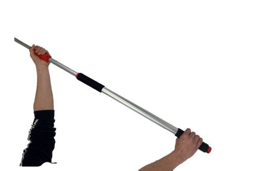 Perche du peintre à déploiement synchronisé. Blocage automatique. 3 brins en aluminium. 2 poignées Soft grip noires. Tête avec clips de maintien anti-rotation et anti-arrachement de la monture. Embout universel clipsable pour les montures de rouleaux.