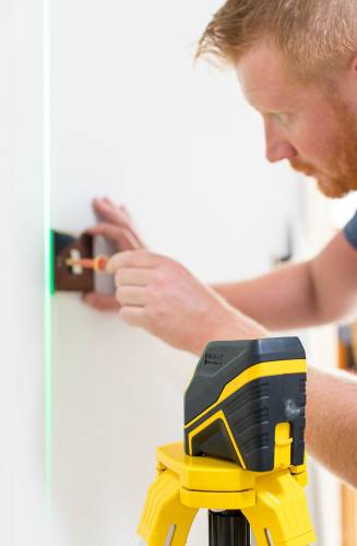 Précision +/- 3mm à 10m. Projection successive d’une ligne horizontale et verticale formant une croix. Angle de 150° qui permet un retour de ligne au plafond plus important. Mode pulsé pour utilisation en extérieur avec cellule de détection (non fournie). Revêtement renforcé. Protection IP54. Blocage du compensateur avec le bouton marche - arrêt. Filetage 1/4'' et 5/8''.