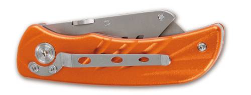 Couteau à cran d'arrêt avec lame trapézoïdale en acier inoxydable, fournie avec 5 lames de rechange.