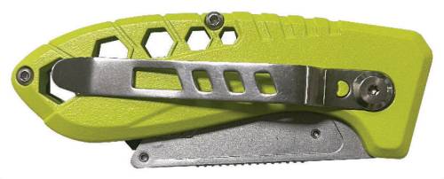 Lame All Blacck 0,6 mm en SK2. Réglable en 3 positons et repliable (seulement 11 cm en position repliée). Avec clip ceinture. Corps en métal en couleur Flash facilement visible sur chantiers. Dénudeur de fil. Changement de lame facilité. Livré avec une lame.