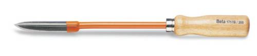 Manche en bois. Lame en acier à forte teneur en carbone thermiquement traité à 61 HRc.