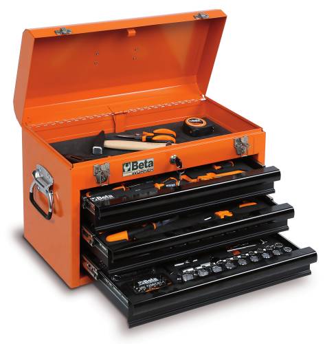 Le coffre portable Beta Work C22E a été conçue avec une structure en alliage d'aluminium légère et résistante. Il est fourni avec 3 tiroirs, une serrure centralisée en façade, une poignée sur le couvercle et une double poignée latérale escamotable pour un transport et une manipulation aisés sur le lieu de travail et sur chantier. Utilisé dans les secteurs de l'automobile, de l'énergie, des ateliers, des industries, de l'aéronautique pour garder tous les outils de travail Beta en ordre et à portée de main.