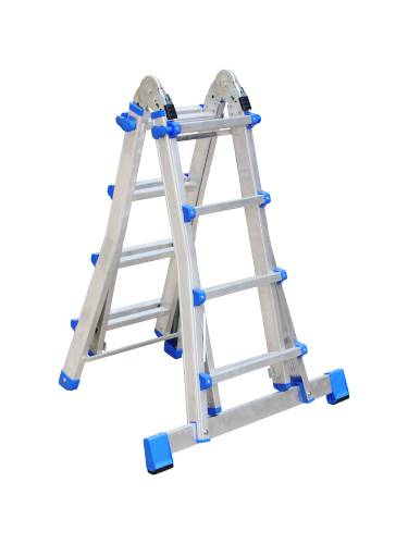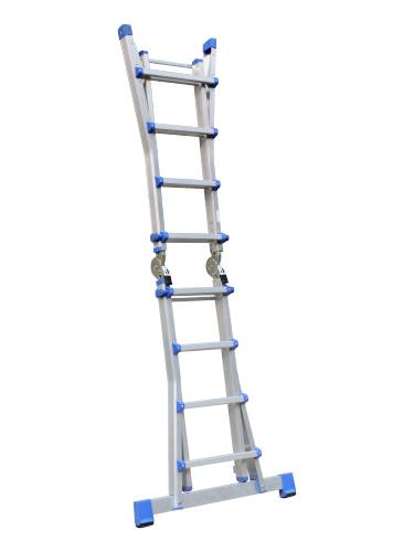 L'échelle Multiscopic en aluminium permet un usage polyvalent en toutes circonstances. C'est un moyen d'accès léger, sécurisé et confortable. Cette échelle s'utilise déployée droite ou en position double plan de montée. Ses échelons déportés permettent un bon confort d'utilisation. Il est possible d'utiliser cette échelle en décalage de niveau. Articulations robustes en acier. Verrouillage de l'échelon. Larges patins antidérapants et embase stabilisatrice. Pour un usage intensif professionnel ou domestique. Elle répond à la norme EN 131-4 et au décret 96 333. Charge maxi 150kg.