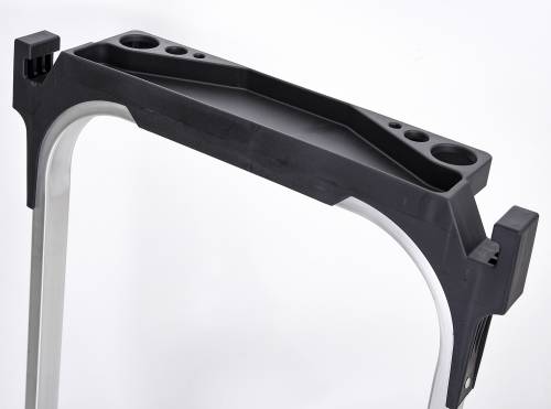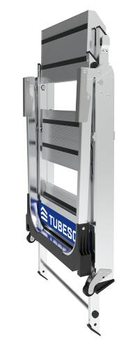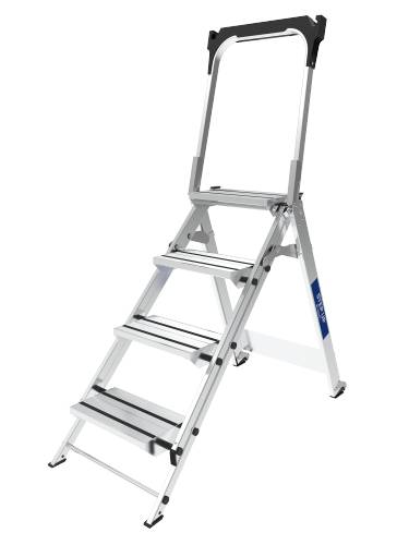 Marchepied en aluminium. Ses marches de 20x36 cm, son garde-corps pliable et son porte-outils avec son crochet porte-seau font du STEP UP un marchepied