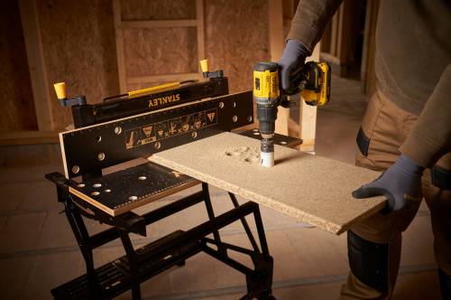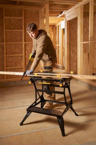Structure en acier. Panneaux en bambou avec une plus grande durée de vie que le MDF. Sa double hauteur de travail permet une utilisation optimum : établi complet, établi, serrage ou tréteaux. Polyvalent : Un panneau supplémentaire pour être transformer l’établi 2 en 1 en établi complet (table pleine). Câles fournies pour bloquer parfaitement les formes complexes. Serrage vertical : Une des mâchoires se lève en position 90° pour offrir encore plus d’options de serrage pour les longues pièces notamment. Peu encombrant : Se transporte et se range facilement une fois replié. Sécurisé : Pieds anti-dérapants pour une utilisation en toute sécurité. Pratique : Système d’entraînement des manettes avec lequel en actionnant une cela entraine l’autre pour un ajustement rapide des mâchoires. Ajustement fin possible avec une manette pour adapter l’écartement à la forme de la pièce (rarement droite).