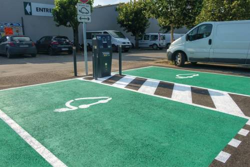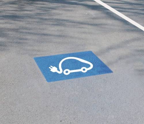 Pochoir en polypropylène pour marquer un mur ou un sol à l'aide de peinture. Permet d'identifier une borne de recharge pour voiture électrique. Pochoir lavable et réutilisable.