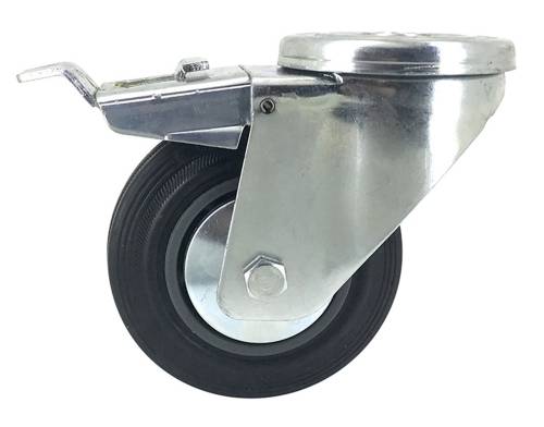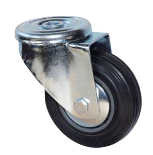 Roulette pour manutention silencieuse sur sols industriels. Avec pare-fils, bandage caoutchouc noir.
