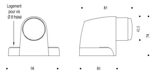 Corps en zamak. Bouchon amortisseur en élastomère noir absorbant les chocs. Livrées sans fixation. Cale de rehausse disponible en option.