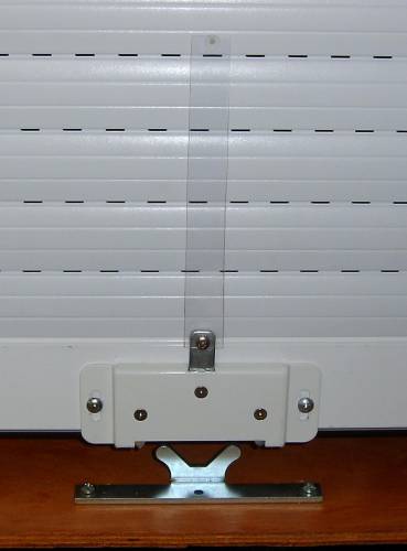 Verrou fixé sur le volet. Condamnation automatique à la fermeture. Déverrouillage à la levée grâce à la lame translucide.