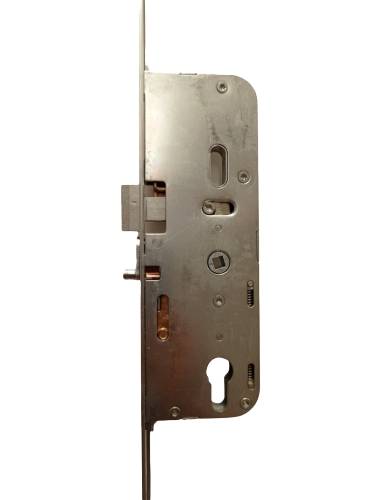 Crémone spéciale rénovation Trimatic. Pêne 1/2 tour et pêne dormant réversible. Ouverture par action de la poignée. Condamnation automatique avec les galets puis avec la clé du cylindre. Relevage de la béquille pour aider au verrouillage. En acier traité FerGUard argent.