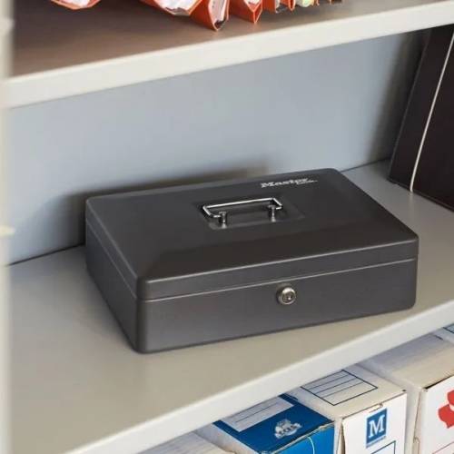 Le coffre à monnaie Master Lock a une poignée rétractable pratique et un plateau amovible facile à utiliser. Un rangement pratique à la maison comme au bureau. Le plateau amovible permet une meilleure organisation. Poignée de transport.