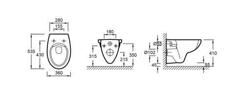 Cuvette suspendue en céramique sans bride à fond creux. L'intérieur de la cuvette sans rebord est complètement accessible et donc plus facile à nettoyer. Il n'y aucun recoin où s'accumulent les bactéries. Cuvette adaptée à tous les bâti-supports du marché. Sortie horizontale. Dimensions 535x360x410mm. Poids 15kg. Livré sans abattant.