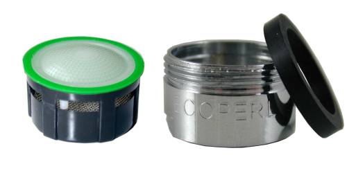 Limitateur de débit air/eau. Corps et dôme supérieur HOSTAFORM®. Grille inox 304, polymère de qualité alimentaire. Grille à maillage large - ACS 6L/mn autolimité (+-8%) sous 3 bars. Jet aéré. Classe E.