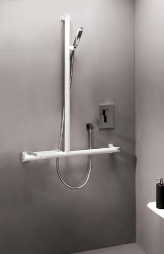 Parfaitement adapté pour les particuliers comme pour l'hôtellerie. Convertible en T ou en L, la barre de douche Arsis s'adapte à toutes les configurations. Préhension améliorée grâce à son tube elliptique 38x25 mm en aluminium époxy blanc. Cache-fixations en résine de synthèse chromé mat. Réversible. 1 support coulissant sur la barre verticale pour faciliter la prise en main de la douchette. 1 support fixe et rotatif sur la barre horizontale pour permettre aux personnes assises de se doucher sans effort supplémentaire. Fixations invisibles. Garantie totale anticorrosion. Le design de ce produit est coordonné aux produits Confort Arsis.